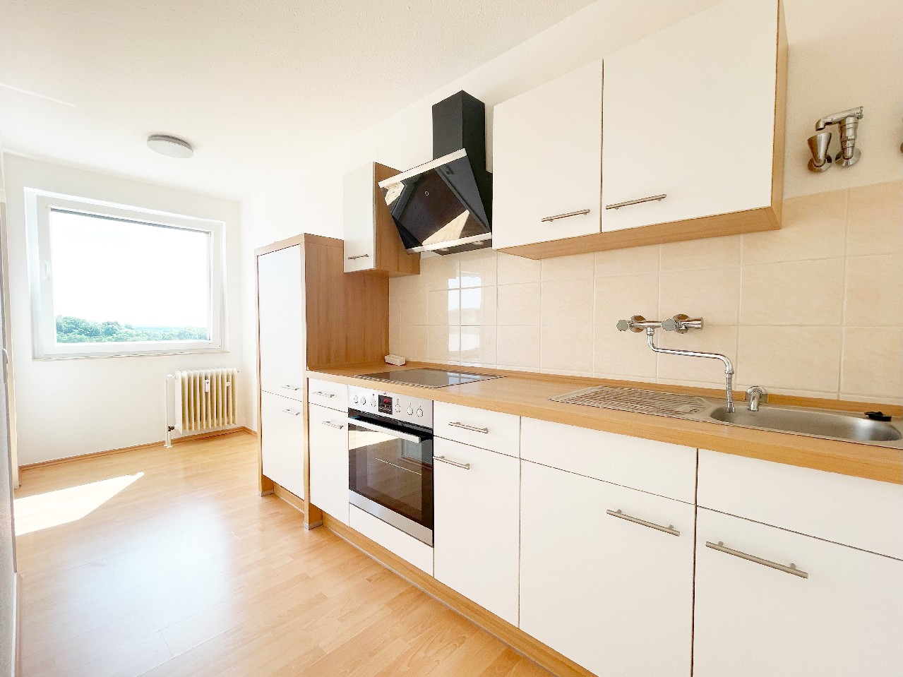 Das in Richtung Rheinebene ausgerichtete helle Wohnzimmer verfügt mit ca. 20 m² über eine angenehme Größe. Von hier aus hat man einen Zugang auf die Loggia mit tollem Fernblick, der bis nach Köln reicht. Neben dem Wohnzimmer befindet sich die Küche mit praktischer Essecke, ein zweiter Zugang aus dem Flur ist vorhanden. Das Schlafzimmer verfügt mit ca. 17 m² ebenfalls über eine angenehme Größe. Weiterhin gehören zur Wohnung ein modernisiertes innenliegendes Duschbad sowie ein Abstellraum. Im Untergeschoss des Hauses befinden sich neben dem zur Wohnung gehörenden Kellerraum folgende Gemeinschaftsräume: Waschküche mit Waschautomaten und Fahrradkeller.
