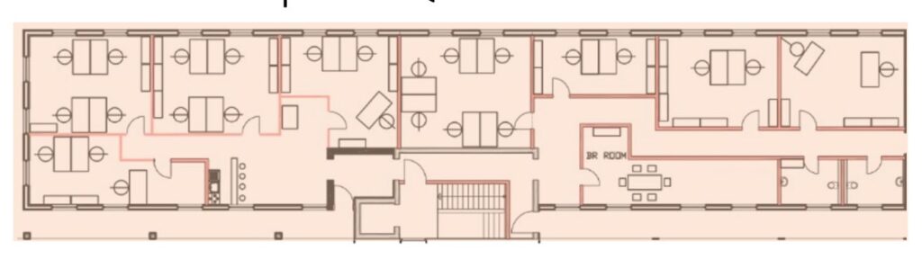 Die Gesamtfläche der noch verfügbaren Büroflächen beläuft sich auf 390 m². Diese ist vollumfänglich ausgestattet und möbliert. Sie benötigen ausschließlich Ihre persönlichen Dinge, die Sie zum Arbeiten brauchen, und können direkt durchstarten.