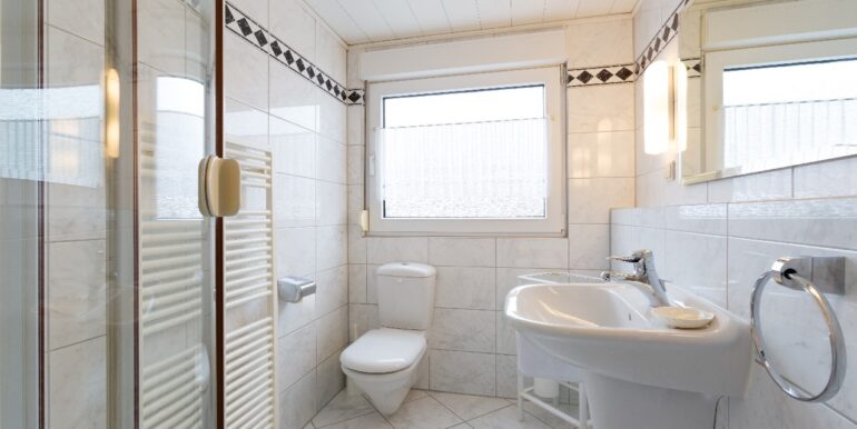Dachgeschoss: Duschbad mit Waschbecken, WC und Fenster