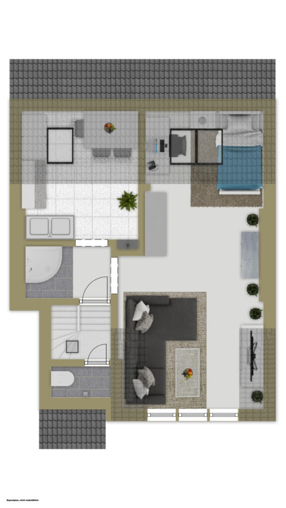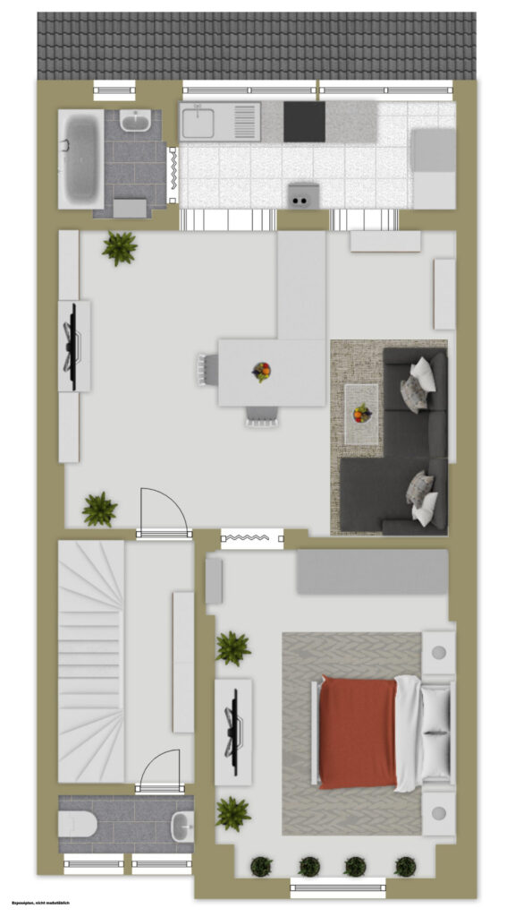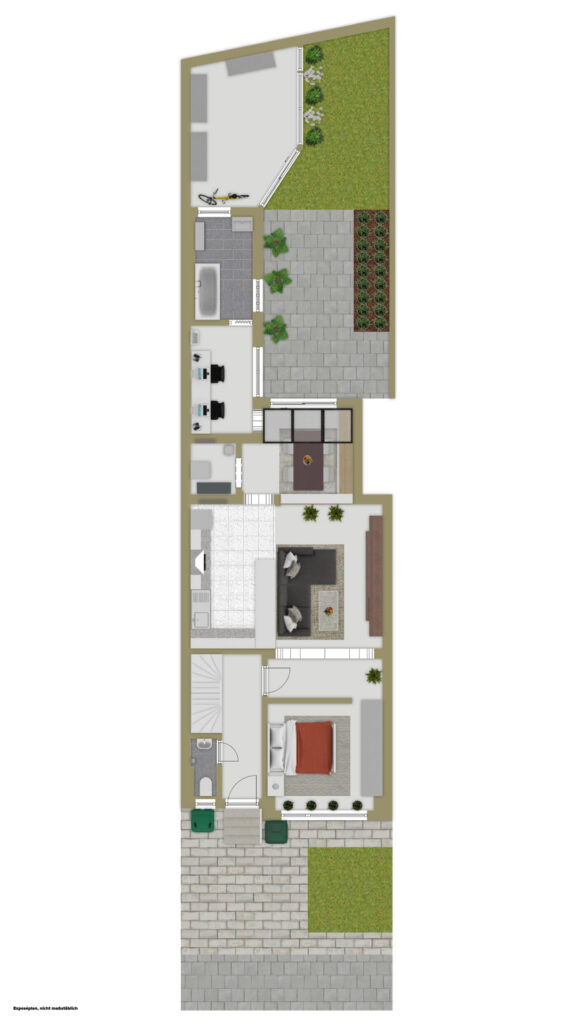 Die Raumaufteilung ist besonders durchdacht und auf maximale Funktionalität ausgelegt: Mit insgesamt drei Schlafzimmern sowie drei Badezimmern und drei separaten WCs bietet jede Etage ein hohes Maß an Autonomie und Privatsphäre. Während das Erdgeschoss durch seinen direkten Bezug zum gemütlichen Außenbereich überzeugt, besticht das erste Obergeschoss durch helle, offen gestaltete Wohnräume. Das ausgebaute Dachgeschoss sorgt für eine spürbare Vergrößerung des Platzangebots und unterstreicht die Vielseitigkeit dieser Immobilie, ob zur Eigennutzung oder als Kapitalanlage.