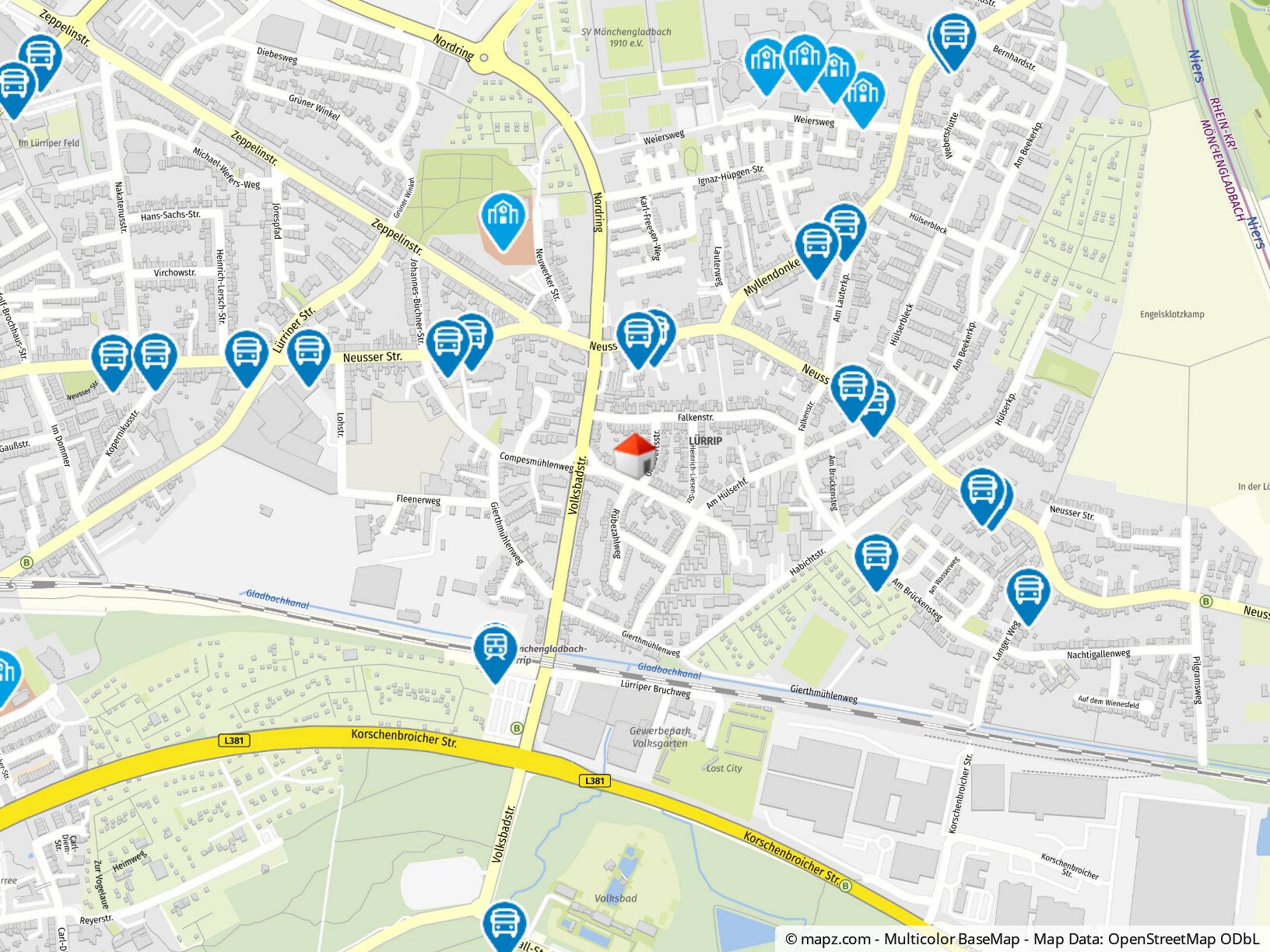 Das angebotene Familienzuhause befindet sich in dem charmanten Stadtteil Lürrip in Mönchengladbach. Diese attraktive Lage bietet eine perfekte Balance zwischen städtischem Leben und ruhiger Umgebung. Das Stadtzentrum von Mönchengladbach ist nur etwa 3 Kilometer entfernt und bequem erreichbar, was vielfältige Einkaufsmöglichkeiten, kulturelle Angebote und gastronomische Highlights in greifbare Nähe rückt.