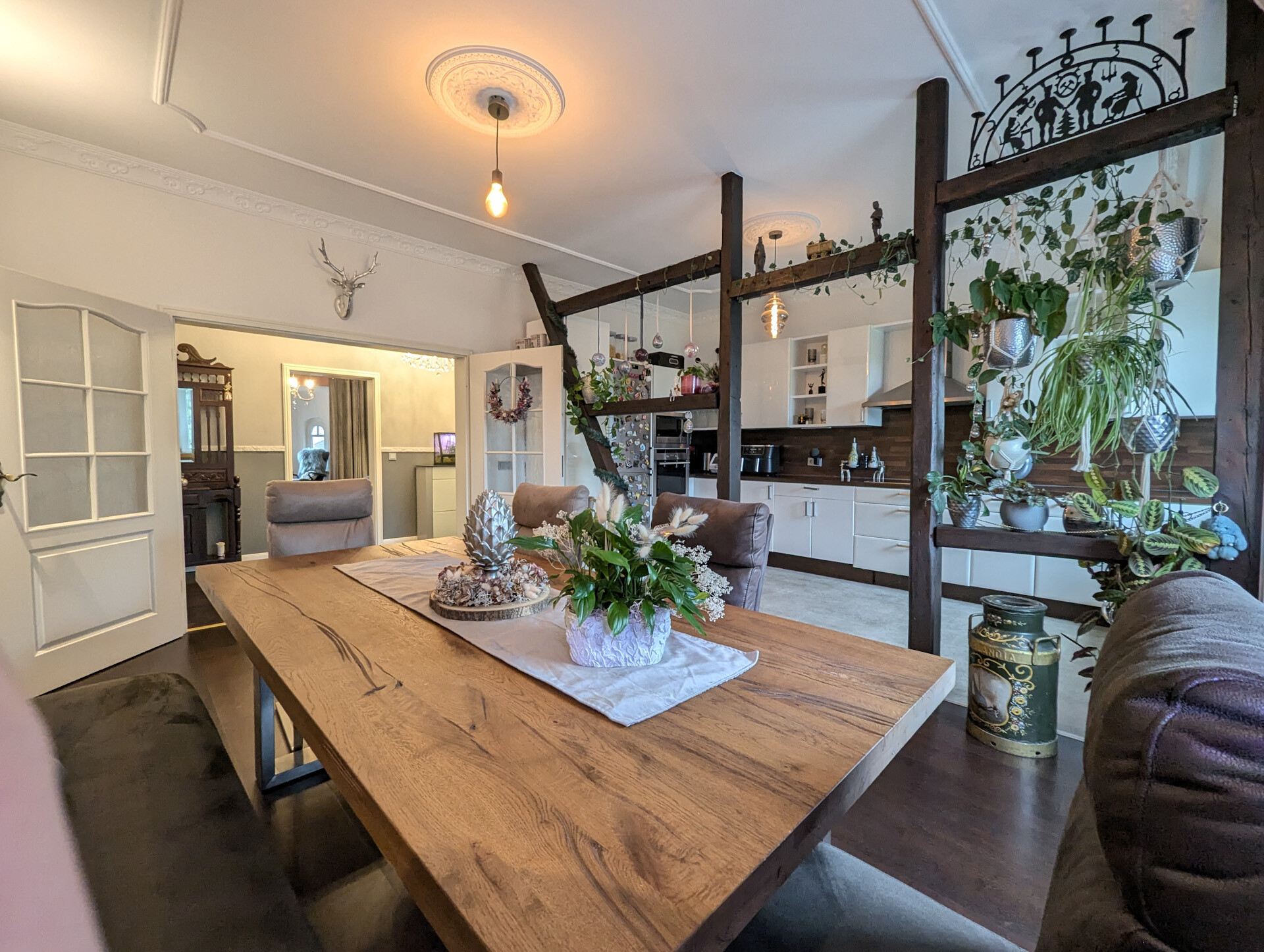 Diese Wohnung verbindet historische Elemente mit modernen Annehmlichkeiten und schafft so ein Wohngefühl der besonderen Art.