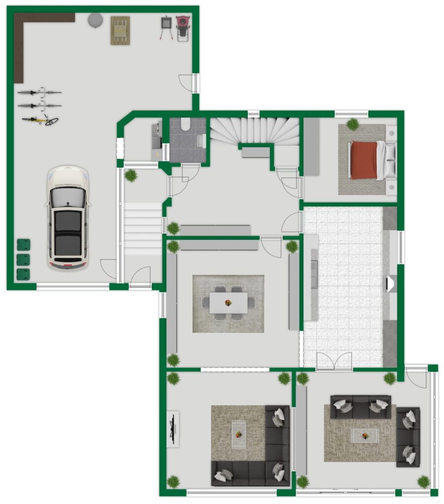 + Große Garage (Platz für 2-3 Fahrzeuge) sowie weitere Stellplatzmöglichkeiten auf dem Grundstück
