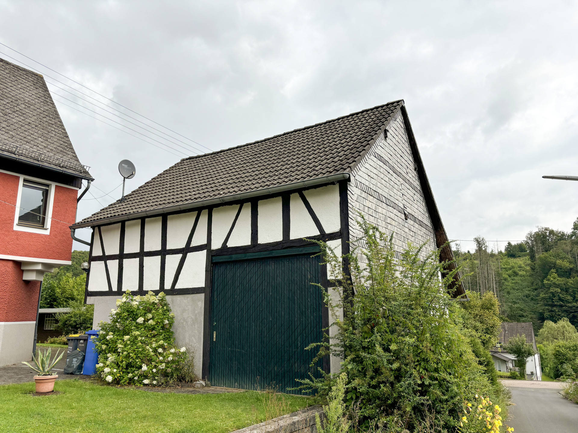 Die geräumige Scheune bietet ausreichend Fläche zum Unterstellen eines Wohnmobils und diverser Gartengeräte oder Fahrzeuge. Für Ihre PKW stehen zudem noch zwei Einzelgaragen zur Verfügung. Ausreichend Platz hält das große Gartengrundstück mit einem Teich für Sie bereit.