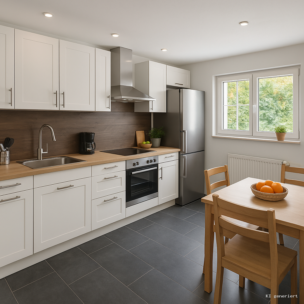 – Böden: überwiegend Laminat, teils Fliesen