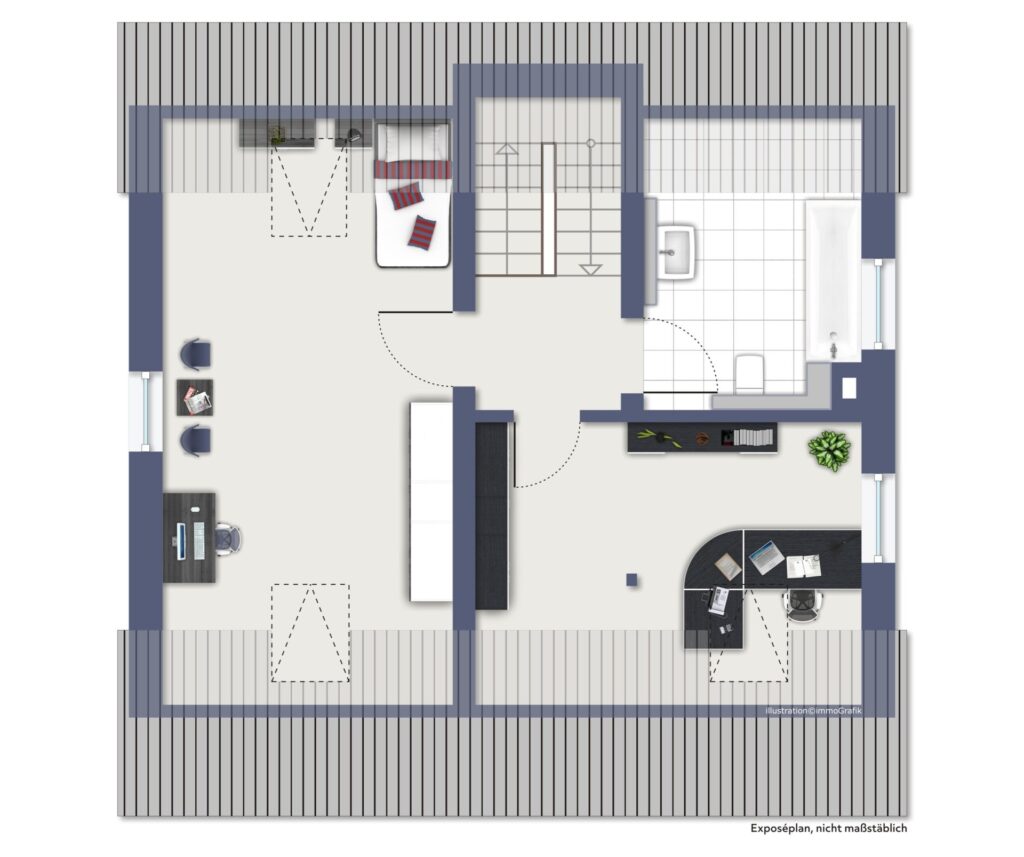 - Badausstattung: Dusche, Badewanne