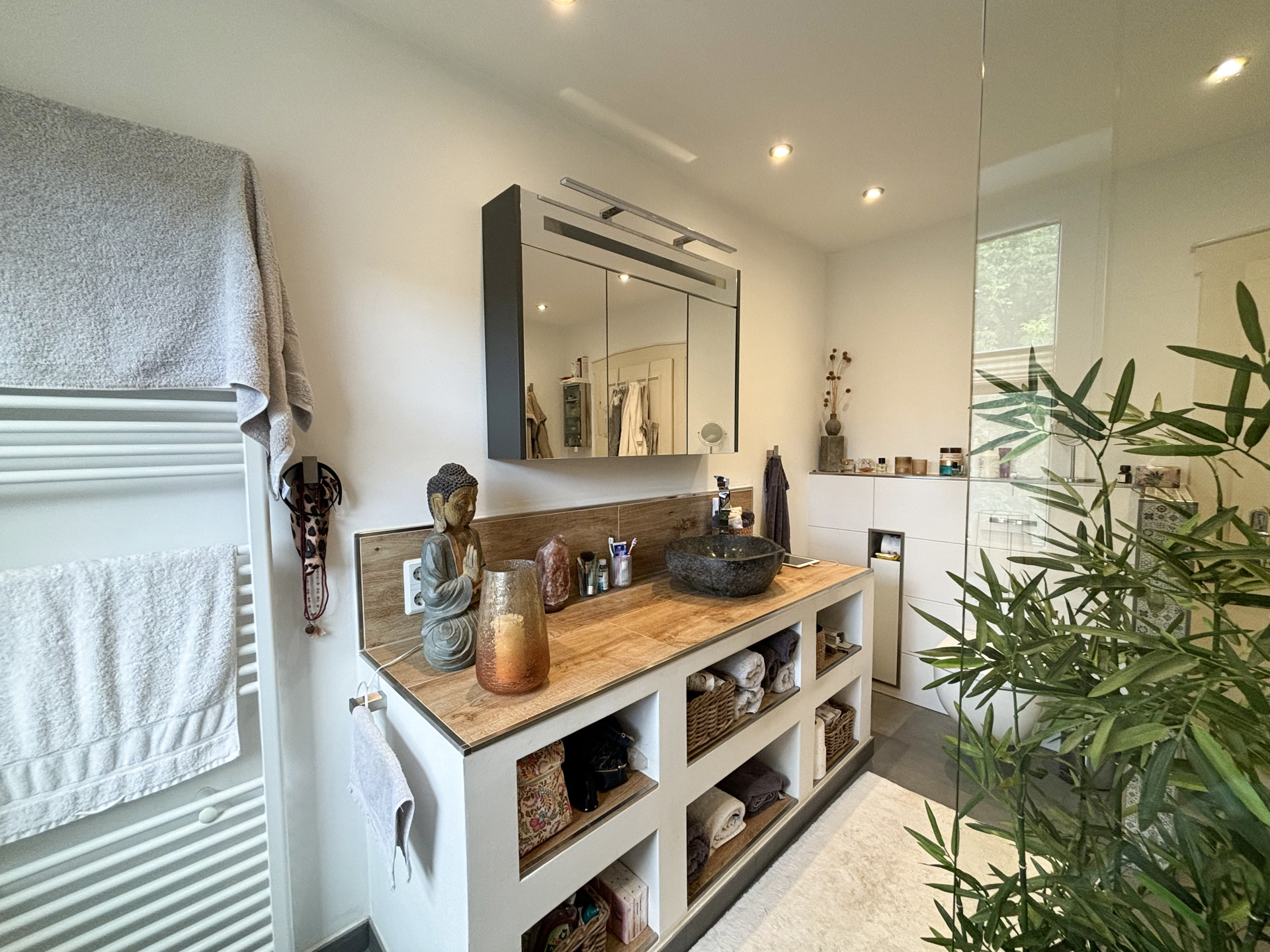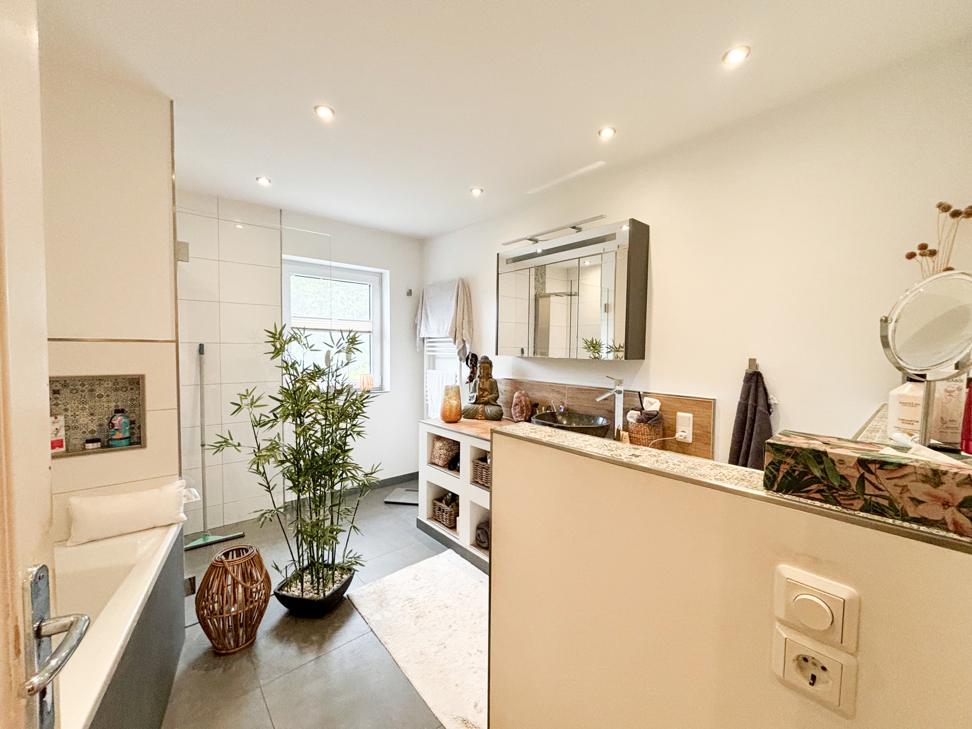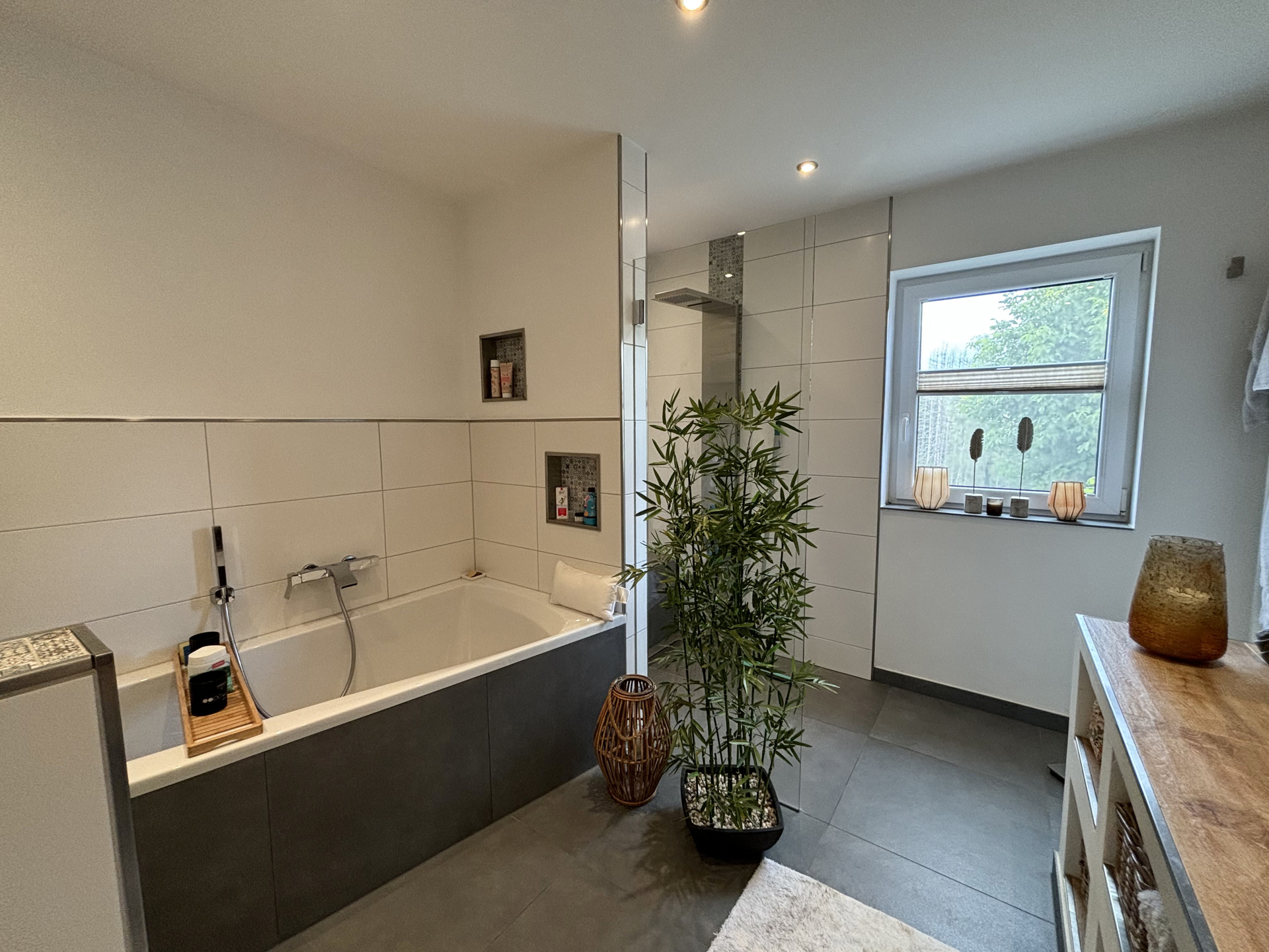 Dieses zauberhafte Fachwerkhaus bietet den perfekten Rückzugsort für alle, die eine Immobilie in einem überwiegend exzellenten Zustand und mit viel Liebe zum Detail suchen. Das Erdgeschoss des Hauses besticht durch seine großzügigen und lichtdurchfluteten Räume. Im Anbau befindet sich ein gemütlicher Wintergarten, der dank der bodentiefen Fenster den Blick in den traumhaften Garten freigibt. Hier sorgt eine Fußbodenheizung auch an kalten Tagen für wohlige Wärme. Das luxuriöse Badezimmer im Erdgeschoss lässt keine Wünsche offen: Eine bodentiefe Regendusche, eine Badewanne und hochwertige Materialien bieten Wellness-Feeling pur. Der offene Wohnbereich wird durch einen stilvollen Kamin komplettiert, der in den Wintermonaten für behagliche Stunden sorgt. Die moderne Küche ist das Herzstück des Hauses. Ausgestattet mit einer großzügigen Kochinsel und einer Theke, lädt sie zu geselligen Kochabenden und kulinarischen Highlights ein. Das Obergeschoss befindet sich in einem gepflegten Zustand, bedarf jedoch einer Renovierung, um das Potenzial des Hauses voll auszuschöpfen. Der geräumige Dachboden bietet weiteres Ausbaupotenzial, um zusätzlichen Wohnraum zu schaffen – ideal für ein weiteres Schlafzimmer, ein Arbeitszimmer oder einen Hobbyraum.
