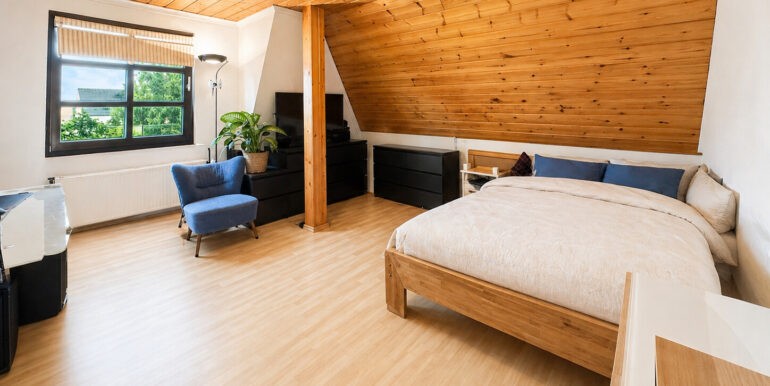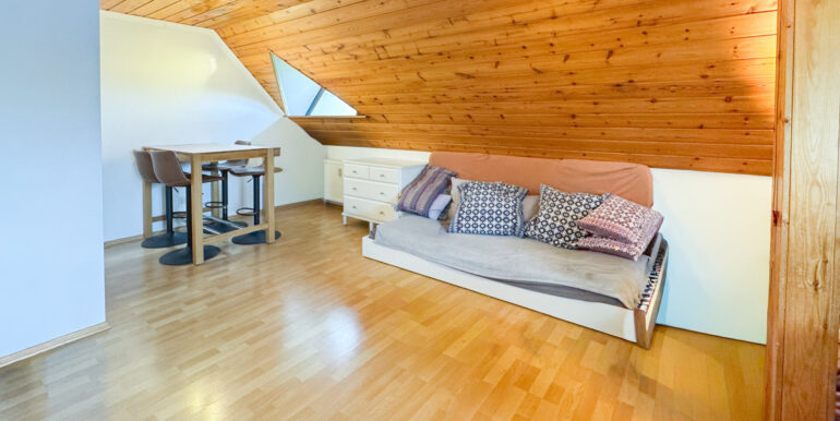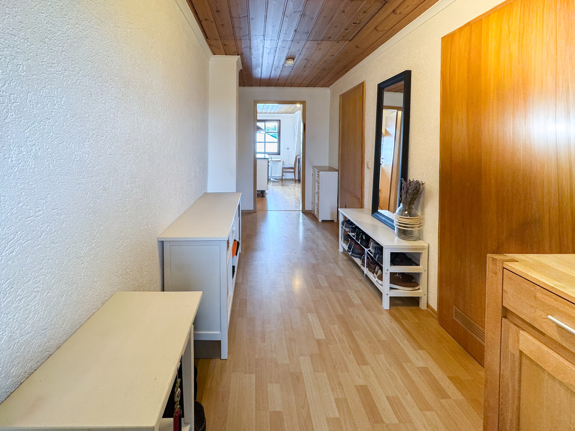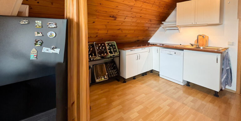 Die Räumlichkeiten bestechen besonders durch die naturbelassenen Holzdecken, welche der Wohnung eine besondere Atmosphäre verleihen.