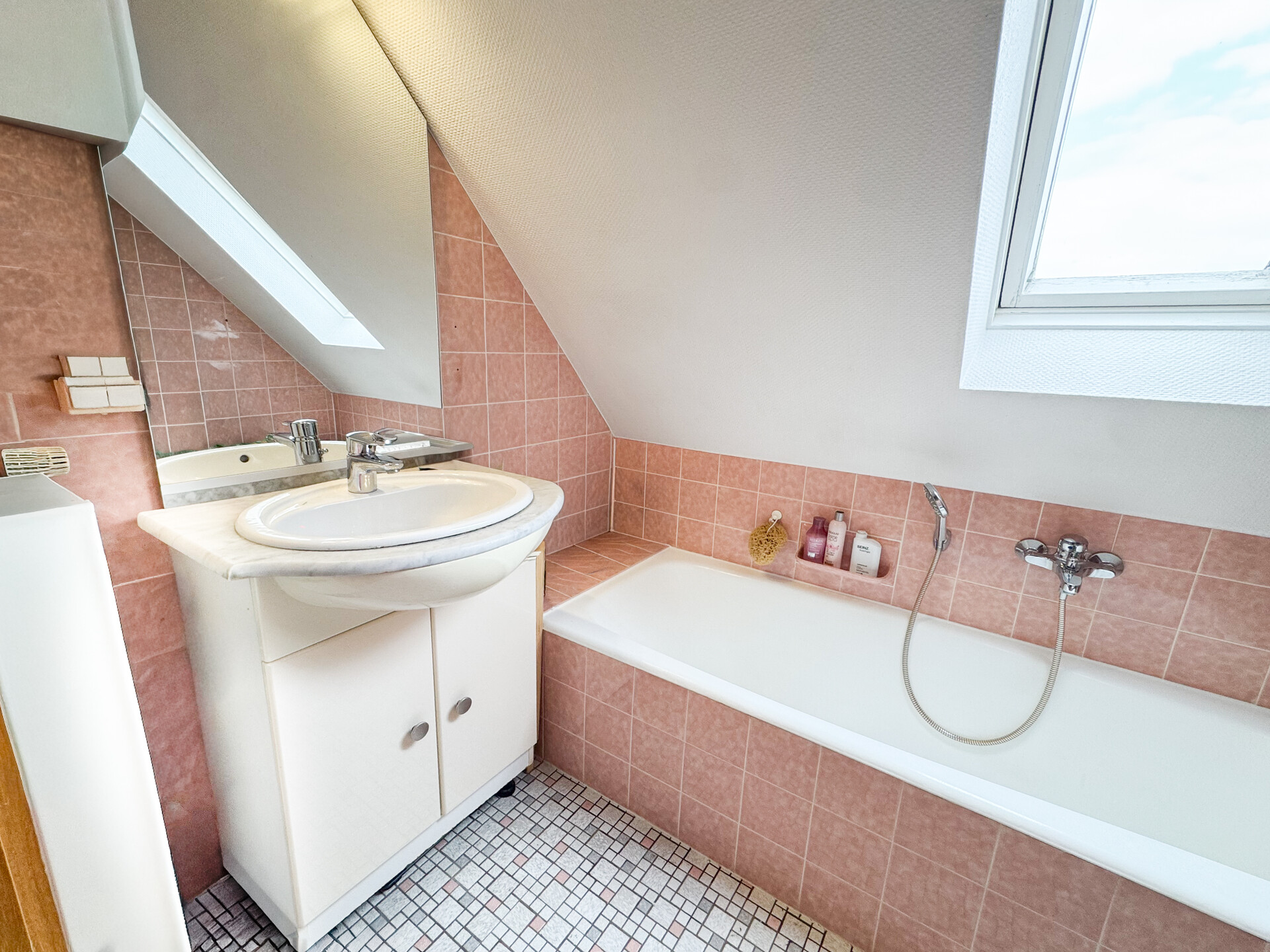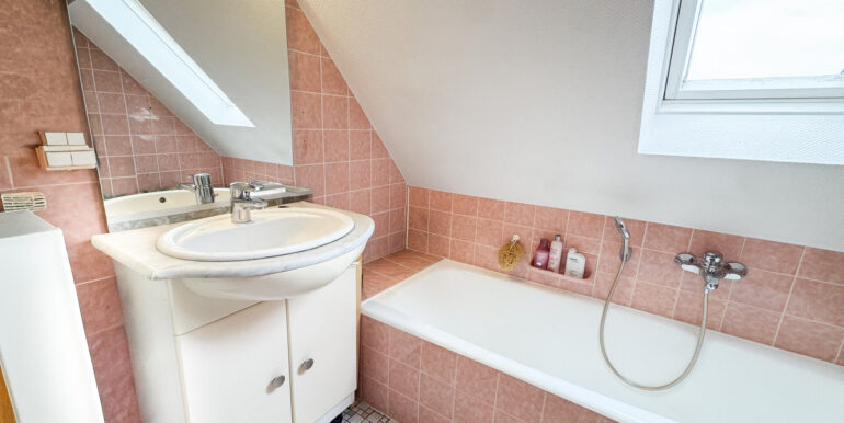 Das Tageslichtbad ist mit einer Badewanne, einem Waschtisch sowie einem WC ausgestattet.