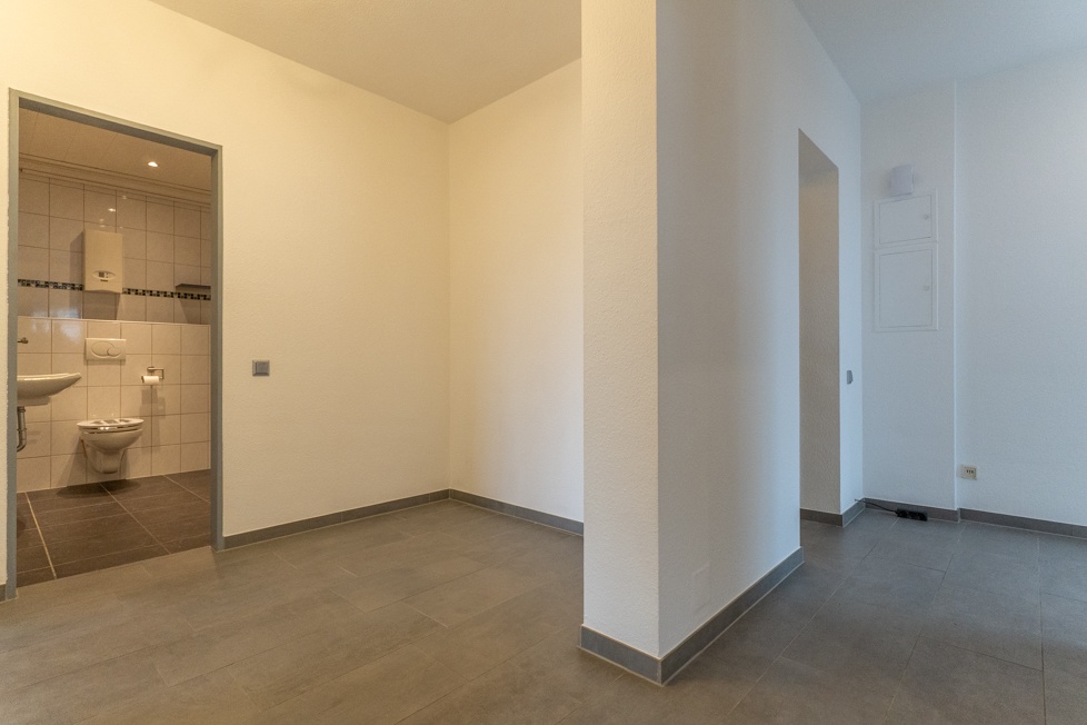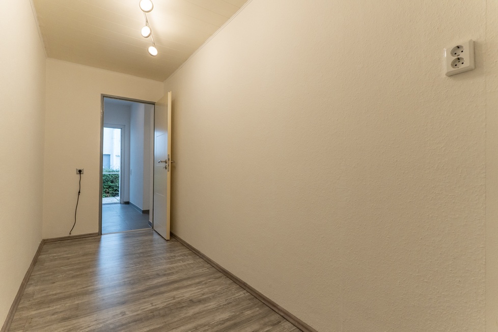 Sie betreten die Wohnung über einen eigenen, separaten Eingang und gelangen direkt in die zentrale Diele, die sämtliche Räume verbindet und Platz für eine Garderobe bietet.