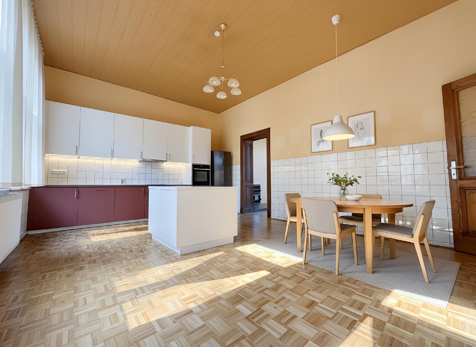 Diese charmante Maisonette-Wohnung erstreckt sich über das 2. Obergeschoss bis ins Dachgeschoss eines gepflegten Zwei-Familienhauses aus dem Jahr 1912 und bietet auf ca. 154 m² ein stilvolles Zuhause mit historischem Flair und moderner Wohnqualität. Hohe Decken, große Fenster und eine durchdachte Grundrissgestaltung sorgen für ein außergewöhnlich großzügiges Wohngefühl.