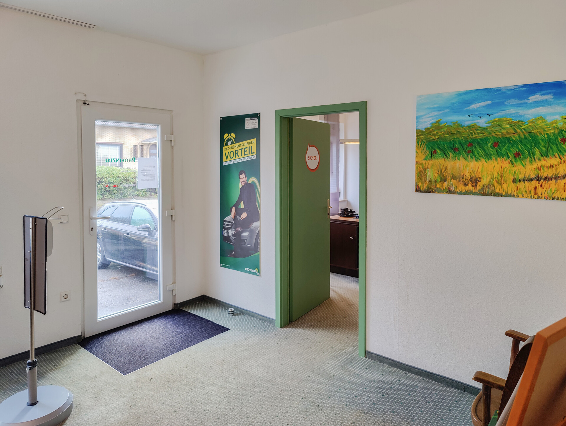 Im Erdgeschoss (ca. 87 m²) befindet sich eine etablierte Versicherungsgesellschaft, die als langjähriger Mieter gerne weiterhin im Gebäude verbleiben möchte. Der Gewerbeteil präsentiert sich in einem modernisierten Zustand und könnte ggf. auch zu Wohnzwecken dienen.
