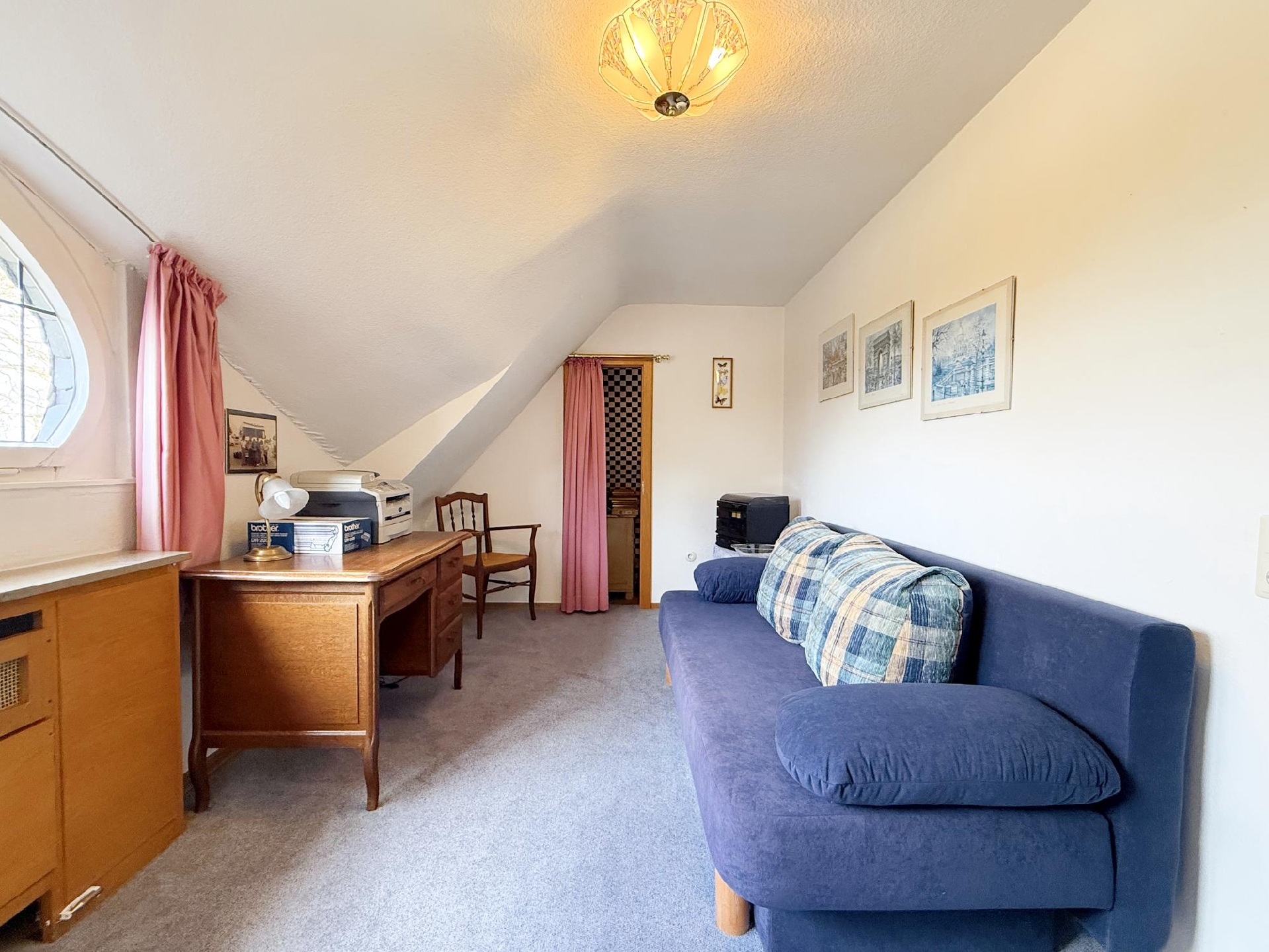 Über eine Ausziehtreppe gelangen Sie in den als Abstellfläche genutzten Spitzboden.