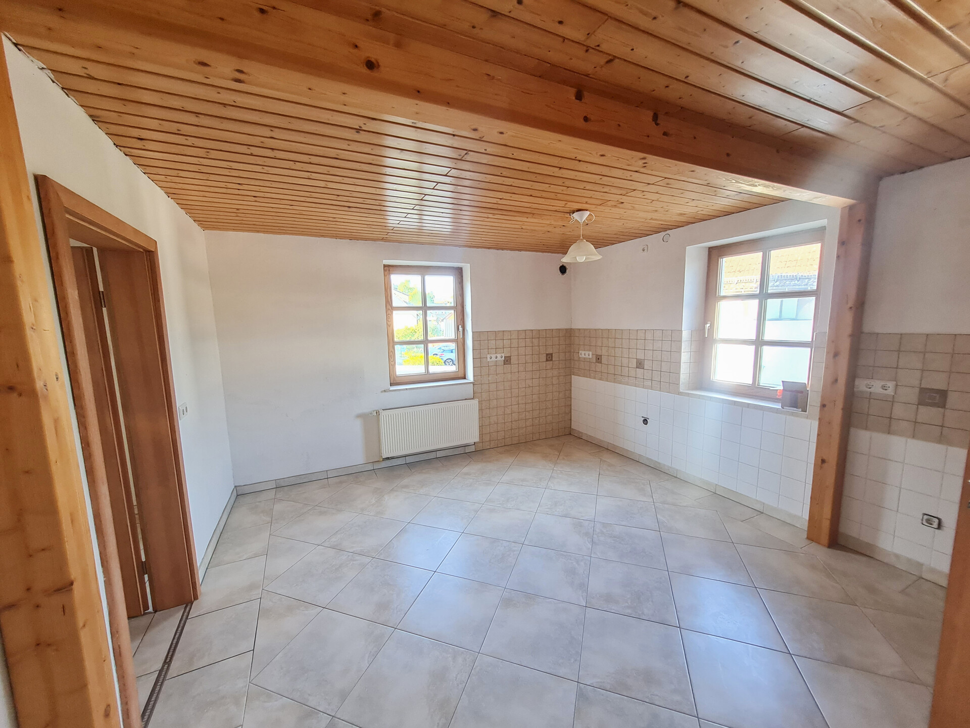 – helle Holzdecken und massive Innentüren
