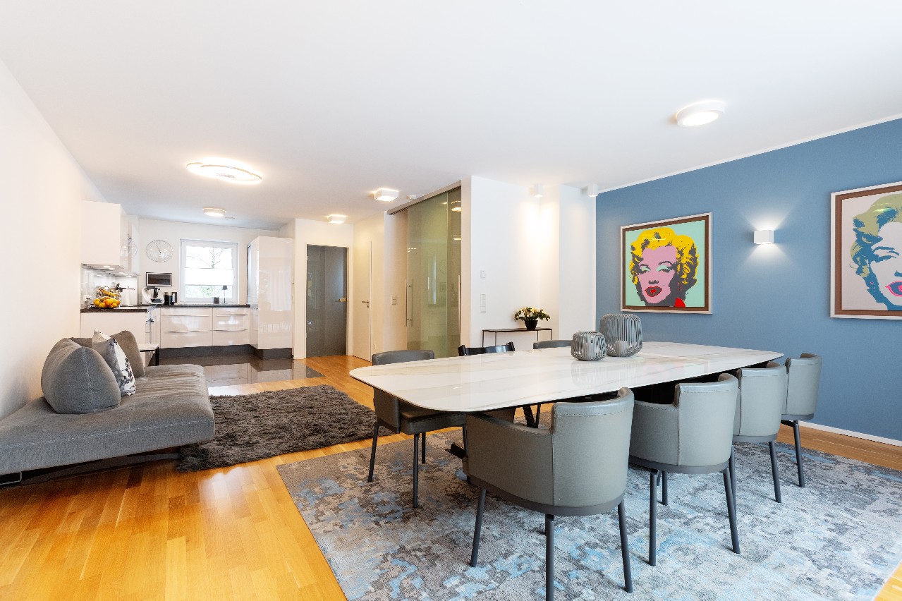 Eine Terrasse im Erdgeschoss sowie zwei Dachterrassen im Staffelgeschoss schaffen viele Rückzugsorte und unterstreichen den attraktiven Wohncharakter des Hauses.