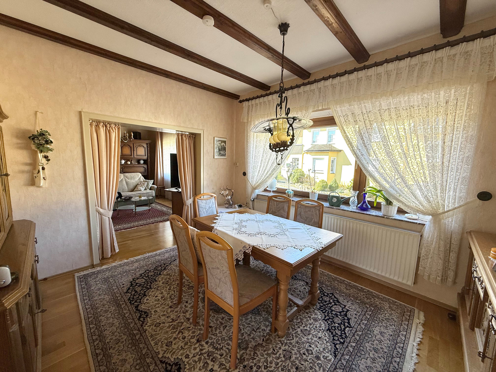 Das Einfamilienhaus fand seinen Ursprung um ca. 1903 und bietet mit ca. 234,50 m² Wohnfläche, verteilt auf 2 Vollgeschosse, reichlich Platz. Es liegt in einem Mischgebiet. Aktuell als EFH genutzt, bietet das Objekt bei Umbaumaßnahmen Potenzial für bis zu 4 WE. Ob für eine große Familie, Hobbys, Kapitalanlage oder Wohnen & Arbeiten. Der frühere Laden mit großer Fensterfront und ebenerdigem Zugang eignet sich ideal als Gewerbefläche, Büro oder Atelier. Im Erdgeschoss finden Sie insg. 6 Räume nebst Küche und einem Duschbad vor. Zwei Lagerräume mit Zugang zur Terrasse und ein WC runden das Angebot der Etage ab. Das Obergeschoss stellt 4 weitere Schlafzimmer (eines mit Küchenanschlüssen), eine Ankleide/Büro (ehem. Balkon) sowie ein Dusch-/Wannenbad zur Verfügung. Der Dachboden über eine massive Holztreppe zu erreichen. Das rd. 790 m² große Grundstück stellt neben zwei Gärten auch eine uneinsehbare Terrasse und viel Freifläche bereit. Als Parkmöglichkeiten stehen eine Garage sowie zwei bis drei Außenstellplätze und ein Carport zur Verfügung. Das Wohngebäude ist vollunterkellert und beherbergt insgesamt sechs Kellerräume. Durch Anbringung einer Außentreppe könnten im Wohnhaus 2 separate Einheiten entstehen. Der ehem. Ladenteil sowie der darüber liegende Bereich würden durch Umbau/Ausbau 2 weitere Wohneinheiten hergeben.