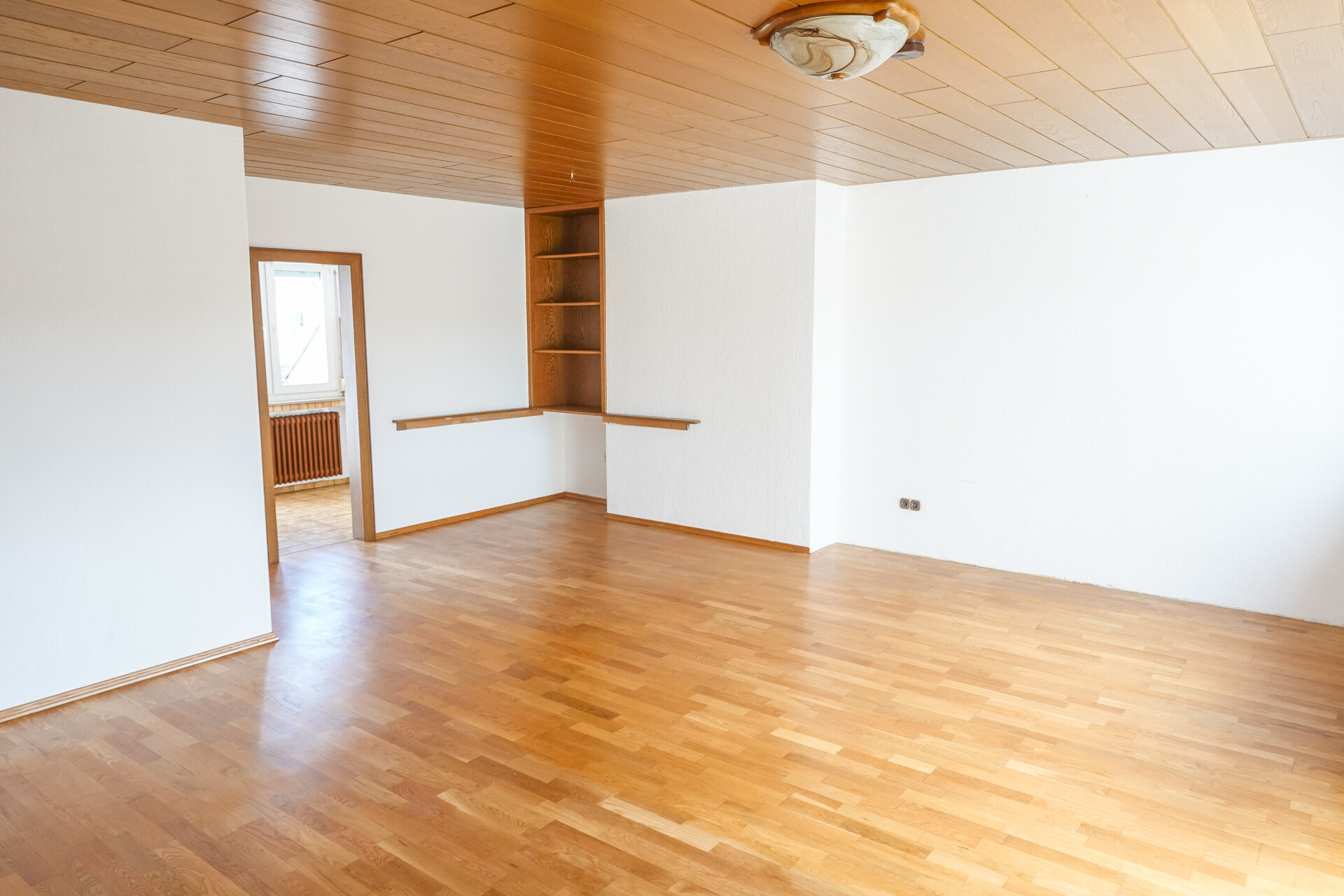 Bodenbeläge: Wohnzimmer mit Parkett, ansonsten Laminat oder Fliesen