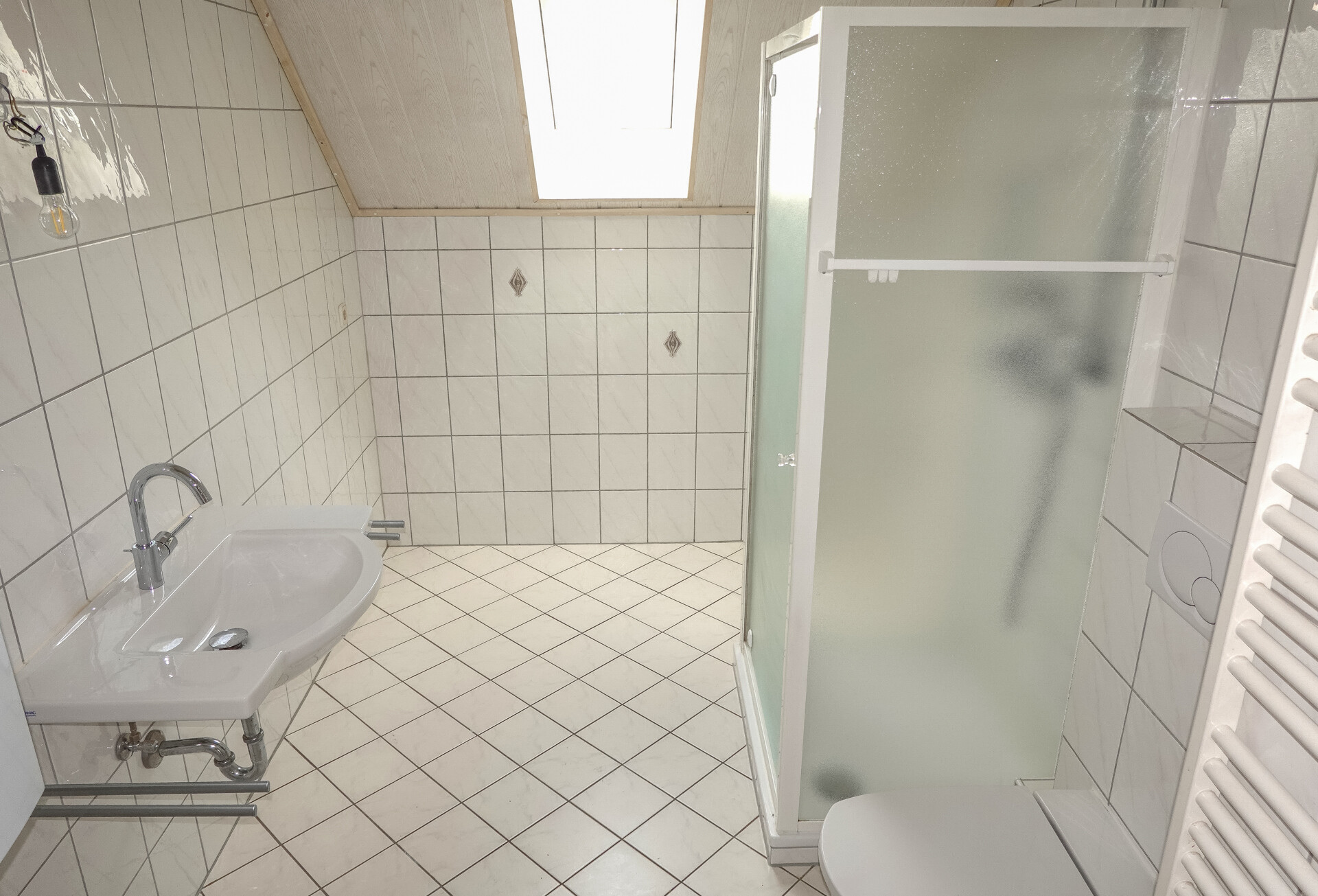 Badezimmer: Tageslichtbad mit Dusche und Waschmaschinenanschluss