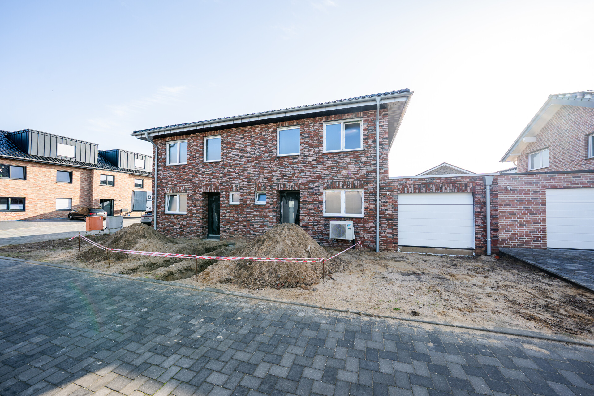Das Haus wird im Innenausbauzustand verkauft: Bodenbeläge, Malerarbeiten, Sanitärausstattung, Außenanlagen wie Terrasse oder Rasen sowie die Zufahrt und der Vorgarten können Sie nach Ihrem Geschmack gestalten. Strom-, Wasser- und Heizungsleitungen sowie eine Luftwärmepumpe sind bereits installiert – sofort startklar für Ihr Traumhaus!