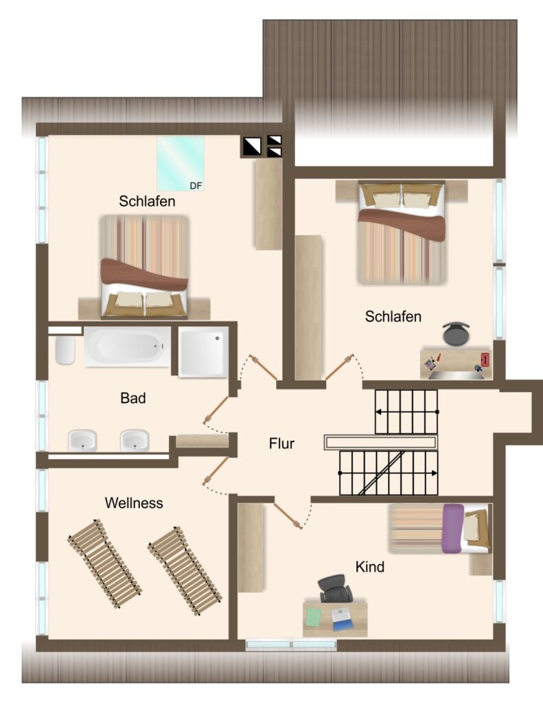 moderne neue helle Bäder und Wellness-Bereich im Obergeschoß mit Infrarot-Sauna