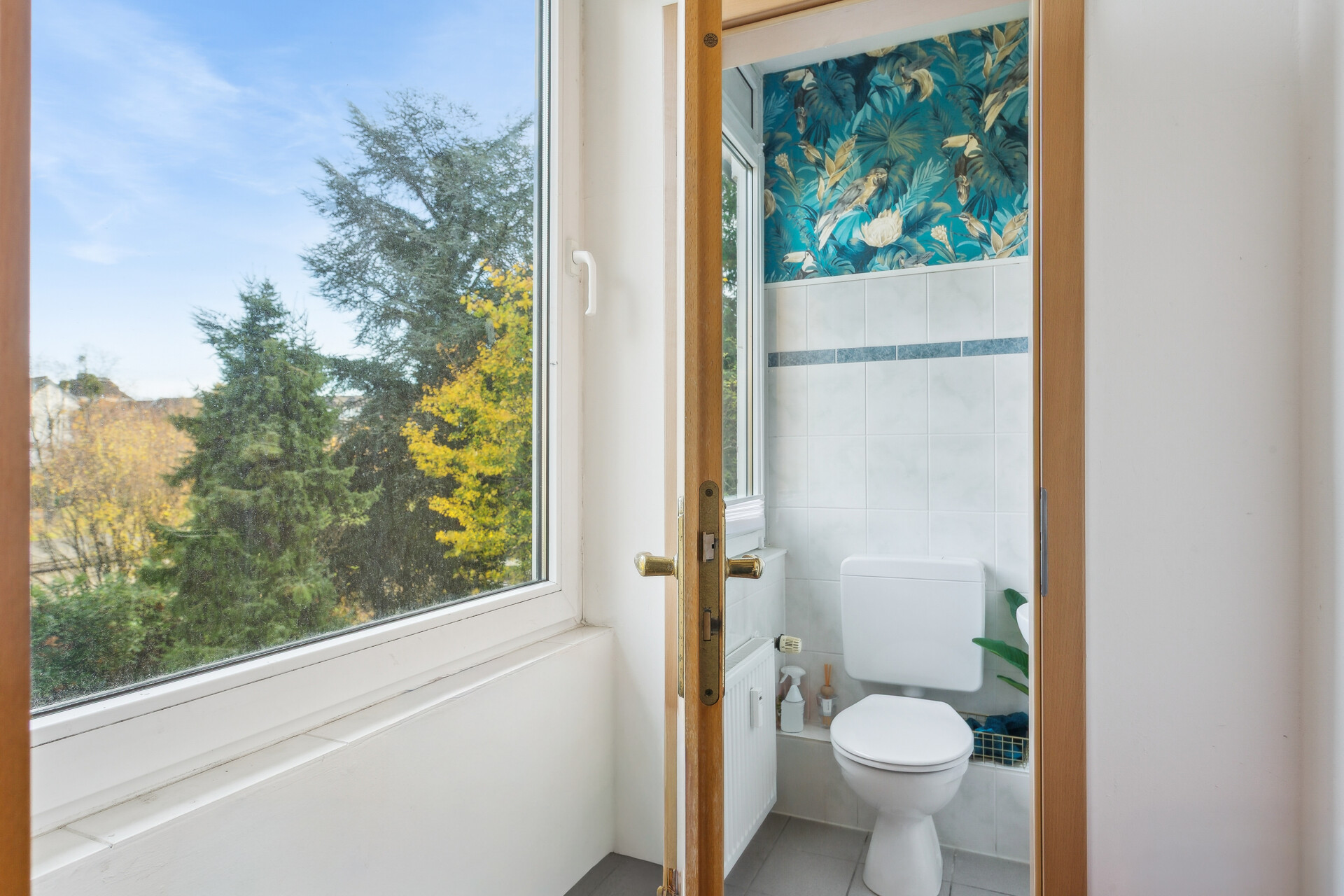 Die Wohnungen im Erd- und Obergeschoss sind identisch geschnittene, großzügige 4-Zimmer-Wohnungen. Jede Einheit verfügt über ein Tageslicht-Gäste-WC sowie ein modernes Badezimmer mit Dusche, welches ebenso mit einem Tageslichtfenster ausgestattet ist. Das Badezimmer im 1. Obergeschoss wurde zudem 2023 modernisiert. Die helle Küche bietet einen schönen Blick ins Grüne und lädt zum Verweilen ein.