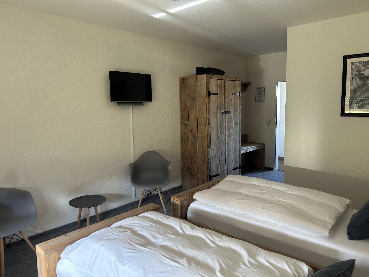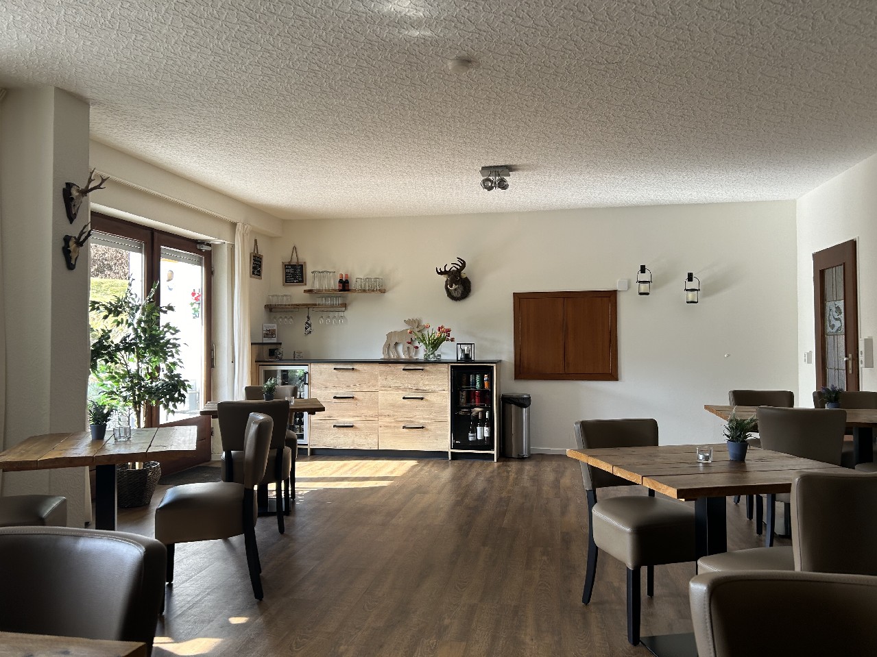 7 gemütliche und vollständig eingerichtete Doppelzimmer. Ein Einzelzimmer. Gastraum und Betreiberküche. Hauswirtschaftsraum. Küchenvorrat mit Kühlzellen. Betreiberwohnung mit 4 Zimmern, Kochen, Diele, 2 x Bad/WC und Abstellraum. Terrasse und Loggia. Garagen.