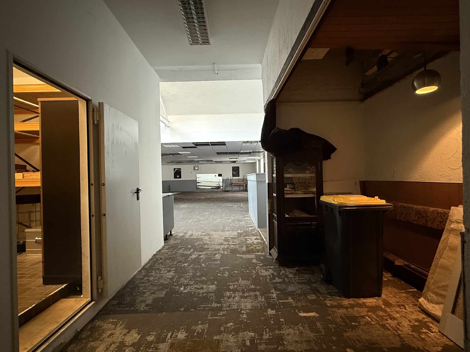 Im Erdgeschoss befindet sich zur Straßenseite hin ein ansprechendes Ladenlokal mit großer Schaufensterfront und einem angeschlossenen Büroraum ideal für Einzelhandel, Dienstleistung oder Büro. Im Flügelanbau liegt ein separater Lagerraum. Die ursprünglich offene Hoffläche wurde überbaut und wird aktuell ebenfalls als Lager genutzt; hier besteht eine Rückbauverpflichtung.