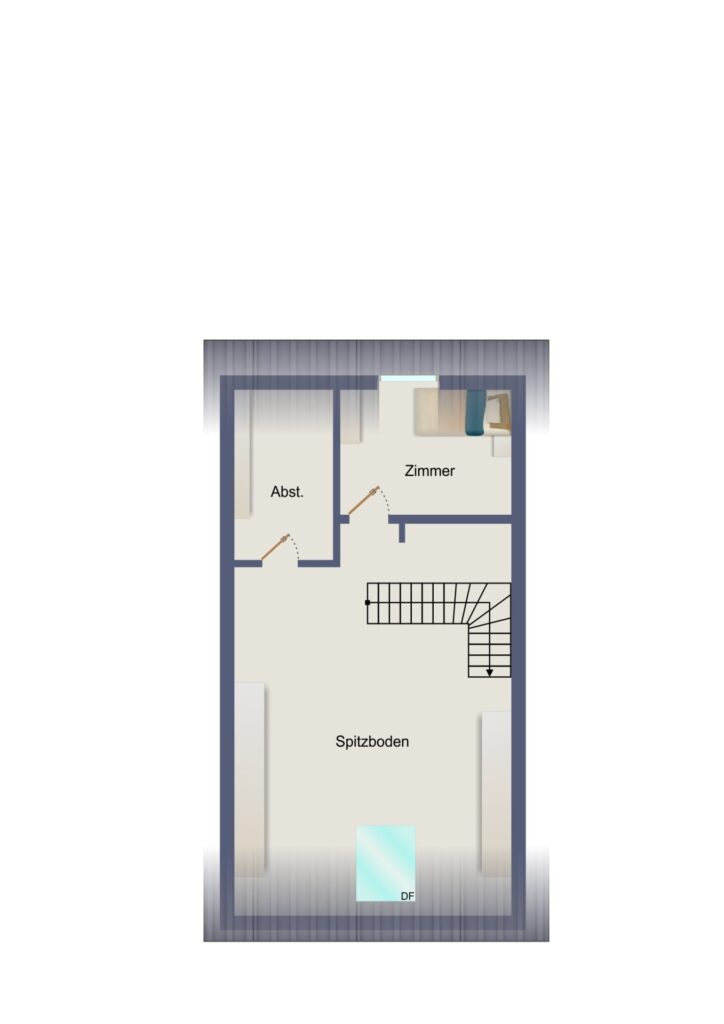 Das Haus erstreckt sich über 2,5 Geschosse. Im Erdgeschoss gelangen Sie vom Flur in zwei Zimmer, die durch einen Abstellraum mit Waschbecken verbunden sind. Praktisch ist hier die zweite Diele, die es möglich macht, z.B. mit Fahrrädern vom Garten auf die Straße zu gelangen, ohne den Wohnbereich zu beschmutzen. Über die geschlossene Holztreppe gelangen Sie ins Obergeschoss. Hier finden Sie zwei Zimmer, die Küche und das kleine Bad mit Dusche. Der ausgebaute Spitzboden bietet zusätzlich Platz als Kinder-, Schlaf-/oder Hobbybereich. Von hier erhalten Sie einen Blick auf den malerischen Dom.