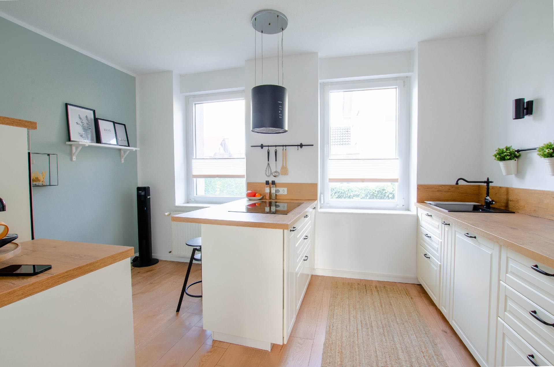 Rechts des Doppelhauses befinden sich zwei separate, moderne Wohnungen, die jeweils mit einem lichtdurchfluteten Wohn- und einem gemütlichen Schlafzimmer ausgestattet sind. Diese Einheiten sind perfekt für Paare, Singles oder als Gästeunterkünfte. Die moderne Gestaltung und die hellen Farben schaffen ein einladendes Ambiente, das zum Entspannen einlädt. Jedes Detail wurde sorgfältig ausgewählt, um Funktionalität und Stil zu vereinen.